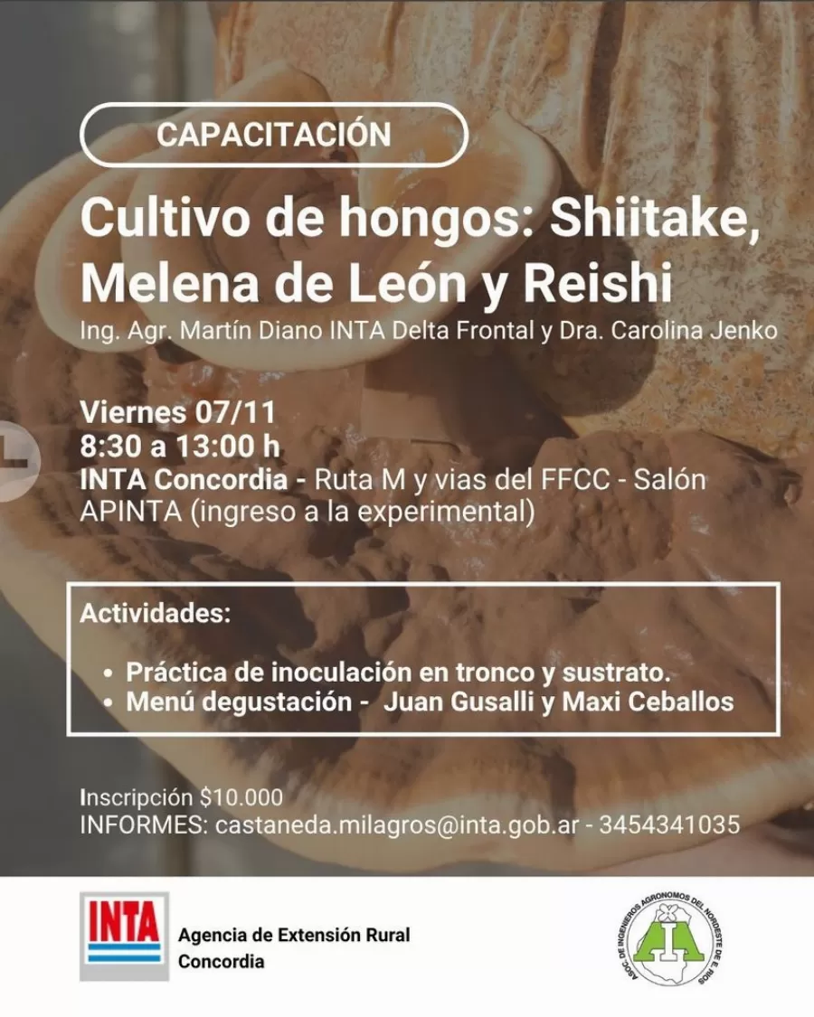 Capacitación Cultivo de hongos: Shiitake, Melena de León y Reishi